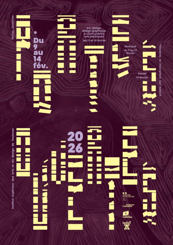 L’isdaT invite le public extérieur et les candidat·es désireux d’intégrer ses formations en art, design ou design graphique à visiter ses locaux site Daurade. Ces Journées Portes Ouvertes permettront de découvrir les salles de cours, les ateliers techniques et les travaux des étudiant·es, de se renseigner sur les cours publics d’arts plastiques et les formations diplômantes en art, design et design graphique, et de rencontrer étudiant·es et enseignant·es.