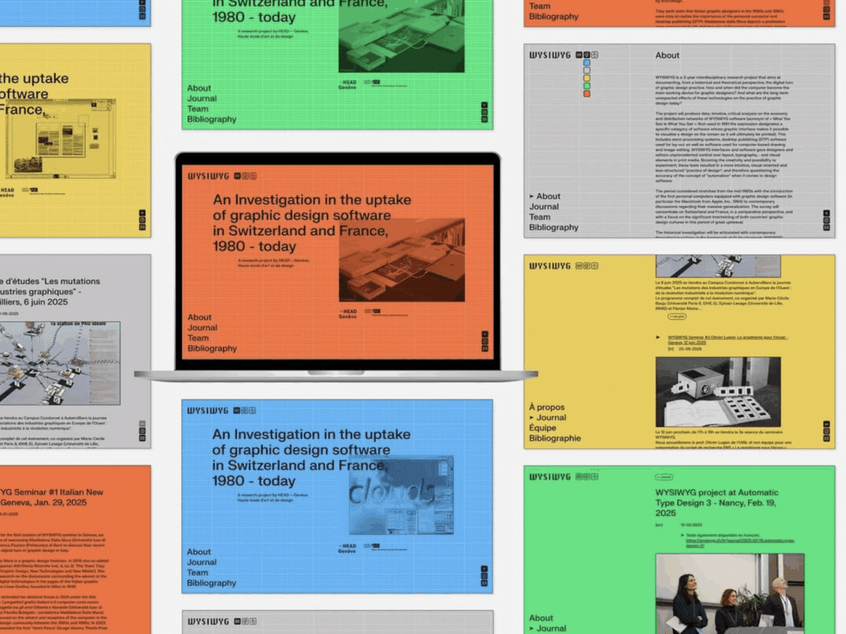 WYSIWYG (“What You See Is What You Get”) est un projet de recherche interdisciplinaire de trois ans porté par la HEAD Genève auquel Caroll Maréchal participe, et qui vise à documenter, d’un point de vue historique et théorique, le tournant numérique de la pratique du design graphique. Comment et quand l’ordinateur est-il devenu le principal outil de travail des graphistes ? Et quels sont les effets à long terme de ces technologies sur la pratique du graphisme aujourd’hui ?