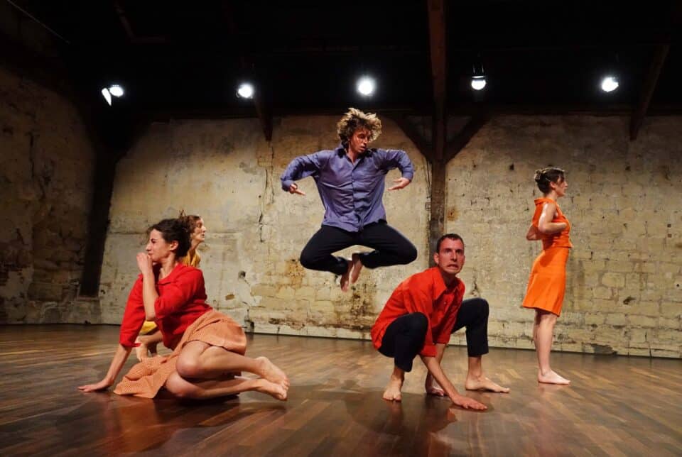 DUENDE est une pièce réunissant 5 danseur·ses et une musicienne dans laquelle voix, corps et rythme mènent la danse. Réunis autour d’une partition vocale et chorégraphique construite à partir de rythmes de danses traditionnelles grecques et flamencos, les interprètes jouent chacun·e les notes d’une musique. Par la répétition et les variations de gestes très expressifs impliquant le visage, la chorégraphie se décline en plusieurs vignettes. Les danseur·euses évoluent dans un univers imaginaire suggéré par la vocalisation théâtrale de la partition chorégraphique.